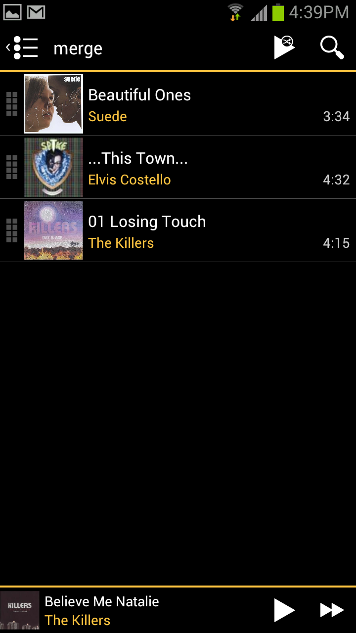 | Description | With the steps below, it is possible to create a single playlist item which has artists from 2 separate songs. Please refer to the screen shots attached Screen 1 - original playlist. From this, "john lennon" is deleted, and "Suede" added Screen 2- playlist state after above Screen 3 - When "merged" item is moved, the songs "demerge", and list of 3 items is shown as expected | ||||
