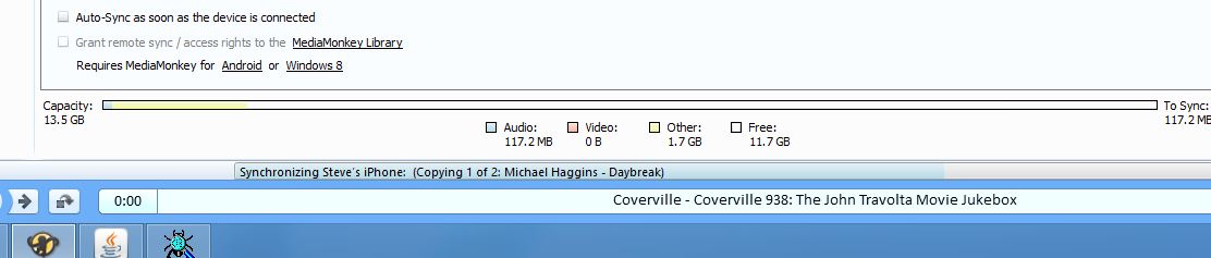 | Description | user donflip: "Regardless of how many items are selected to keep synced in the Auto-Sync settings for my iPod, only 1 track is synced to the device. In the example logged and captured here, I set auto-sync to sync all tracks by the artist 113 (seven tracks), but only the first track is actually synced. If I manually sync, (drag or send to) files are copied properly." I can reproduce on my iPhone, selecting several auto-playlists which contain over 1000 tracks results in a sync that only copies 3 tracks to my iPhone in 4.1. I used the same database in MM 4.0.7 with the same sync settings, and the tracks were all copied as expected. | ||||