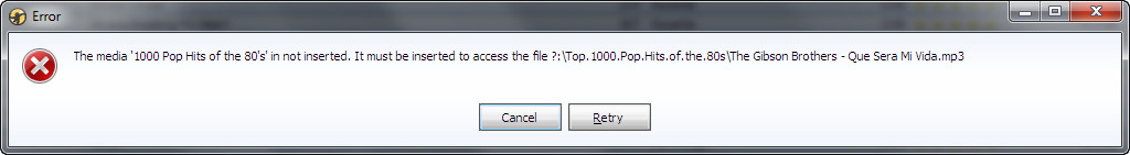 I don't think a warning needs to be enabled, I just made it consistent with others error handling (converting, ripping, volume analyze decoding problems). One single error log is shown at the end of the whole process for all failed files at once. User is informed about the problem, can insert the media and use the Retry column with checkboxes for the desired files. Test 1657 if you don't understand what I mean. |