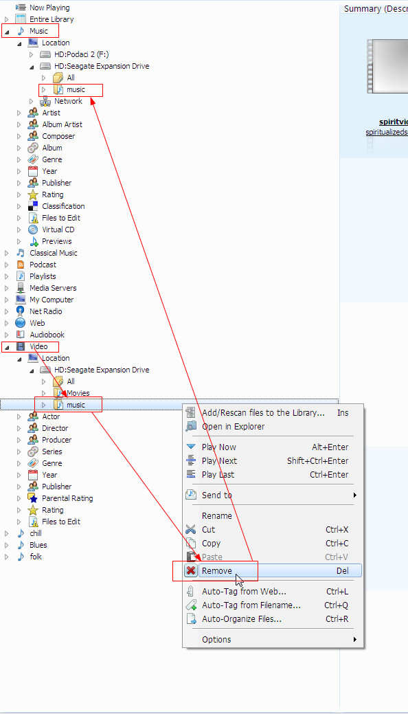 I uploaded Image with Following steps that will delete Music folder from Collection Music also even remove is related to Tracks only in Video Collection and should be limited to those tracks. |