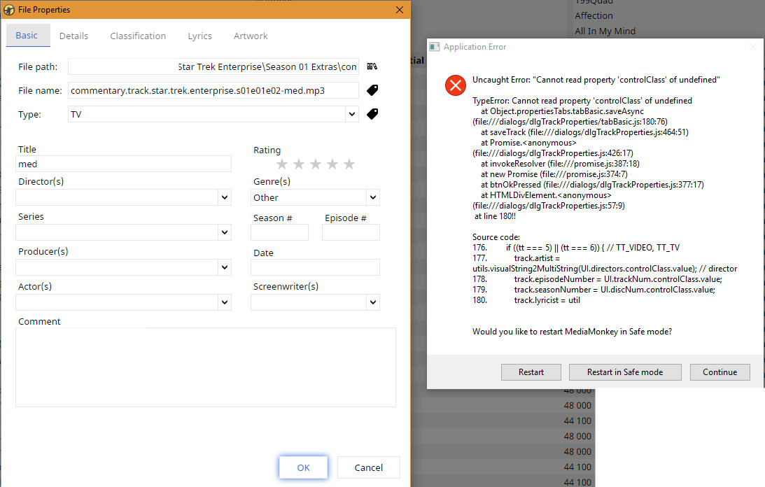 | Description | Changing Type from music to TV Can cause crash on MP3 files | ||||