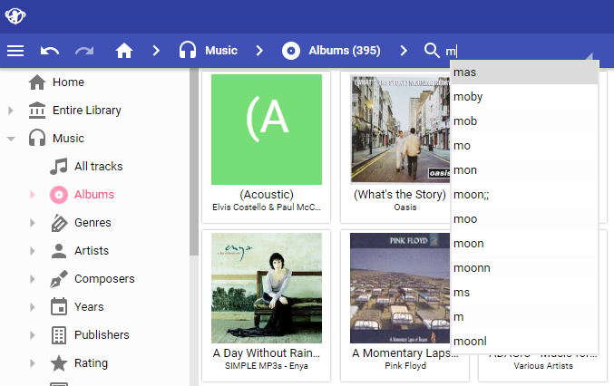 I still see the flashing in the very last SVN code: Go e.g. to Music>All tracks, type 'Test', there's only 'Test' shown in the suggestions (correct). Then start clicking the dropdown arrow => the always flashes a pretty long list (like ~20) of misc suggestions for a while.