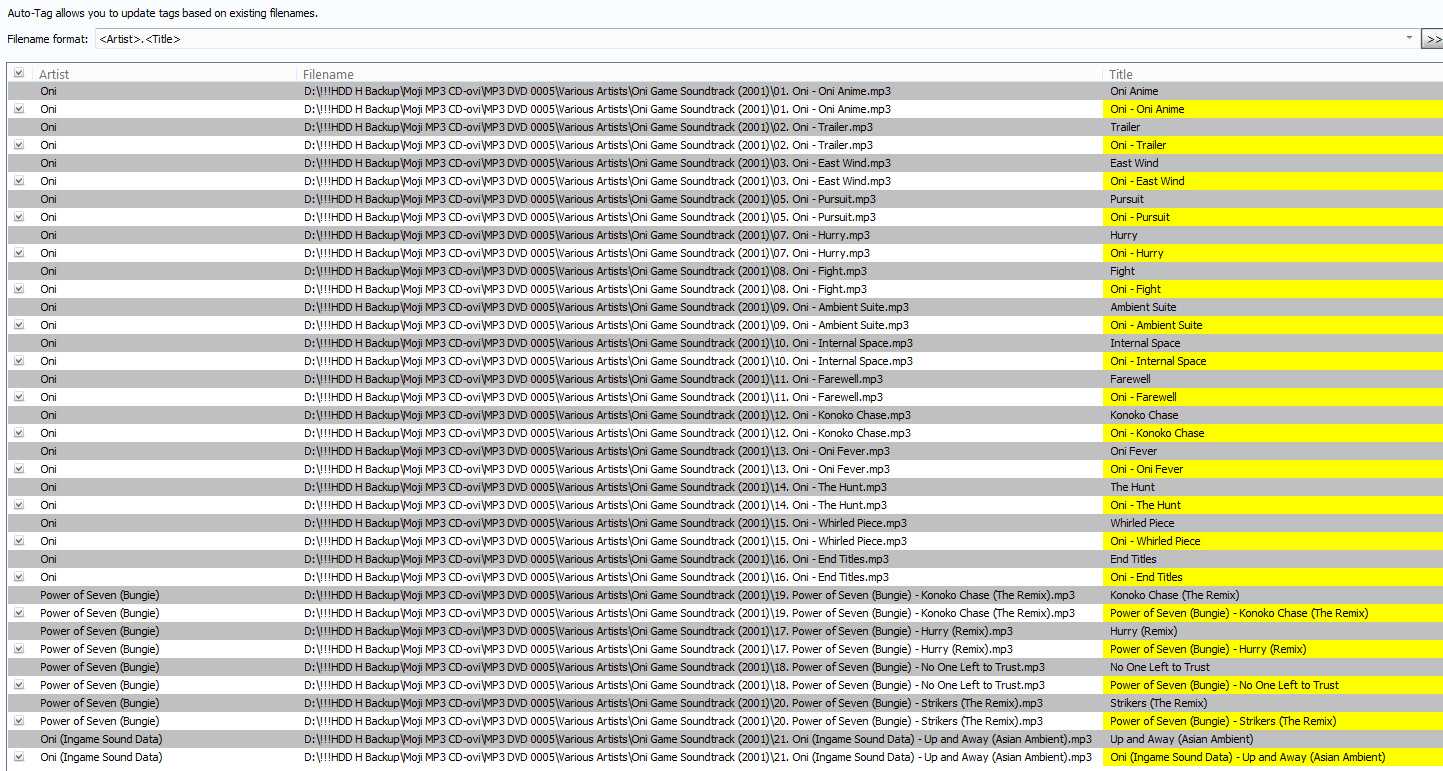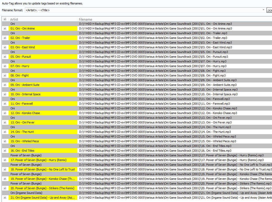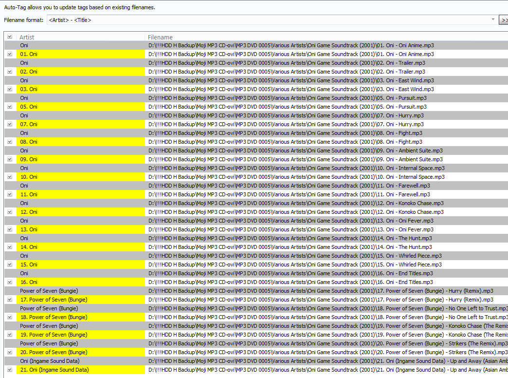 Masks: "<Artist>.<Title>" and "<Artist>. <Title>"