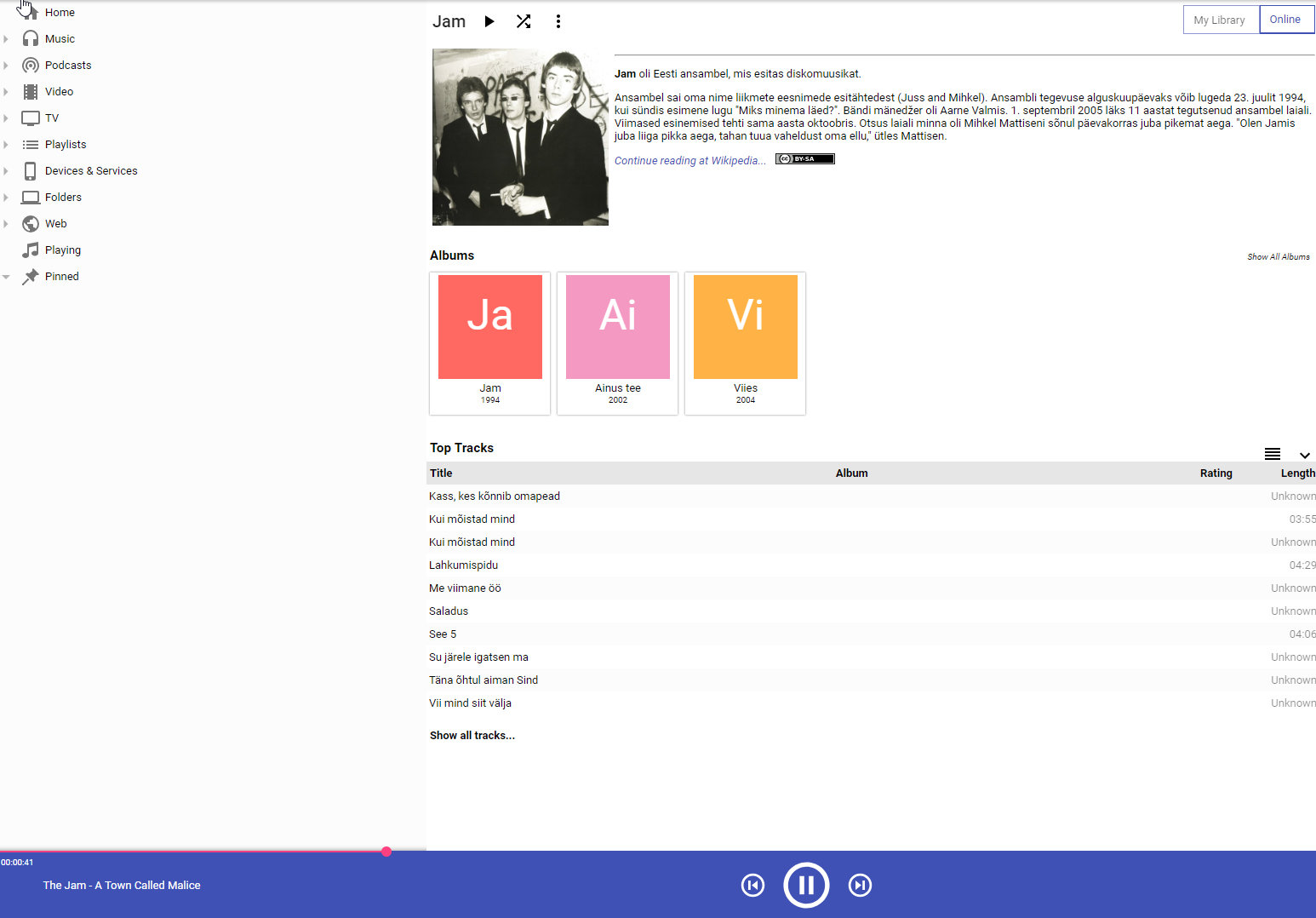 Another very popular example is "The Jam" resulting in https://et.wikipedia.org/wiki/Jam instead of https://en.wikipedia.org/wiki/The_Jam To Sum: Internal Search is OK with searching without THE, but online Search fail in Artist BIO. |