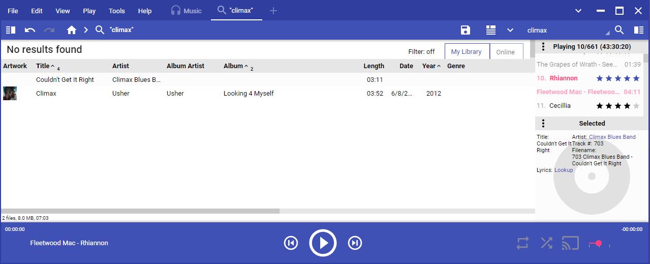 Here's a similar, strange result that occurred on starting MM (after it had been closed in the Search node). It shows 'No results found', and yet below that it shows some matches! |