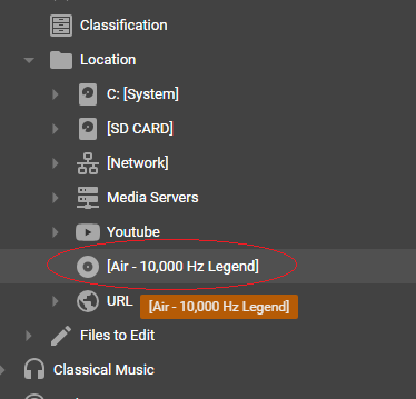 Reopen Small tweak. Available Audio CD (inserted one) is always on sort end as once it gets Drive letter ("J:" In my case) it is always below "[" In other nodes it is not that noticeable as they are smaller, but anyway expected behavior would be that available Medias in Location would be first eg. Available+Ascending Sort -> Non Available+Ascending Sort and I would put Network as First due the fact it contain subnodes and not similar to others. |