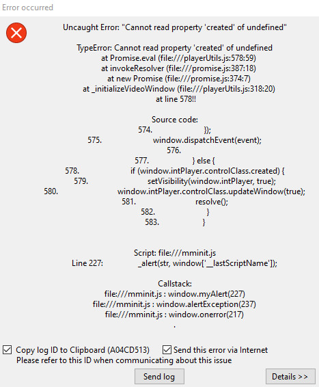 | Steps To Reproduce | 1. Start MM5 2. Add some video files (Folders -> Network -> NAS, AVI Type in my case) along with audio files to Now Playing 3. Start playing Audio and skip to Video file 4. MM5 white screen crash after few logs sent. | ||||