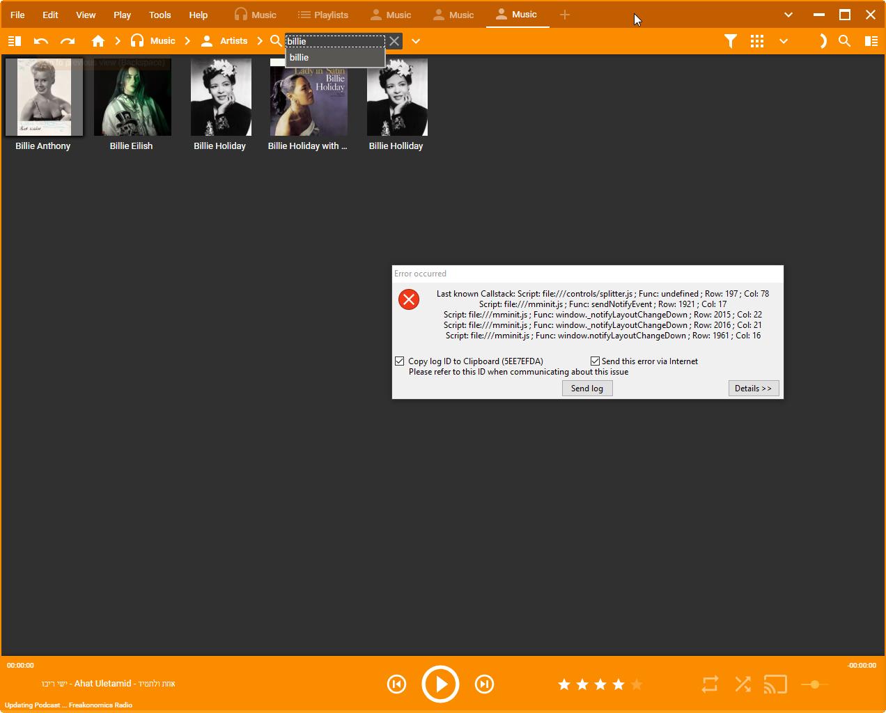 | Description | This doesn't occur consistently, but upon initiating a contextual search in the Artists view, MM froze/crashed. Crashlog, Debug log saved to ftp. | ||||