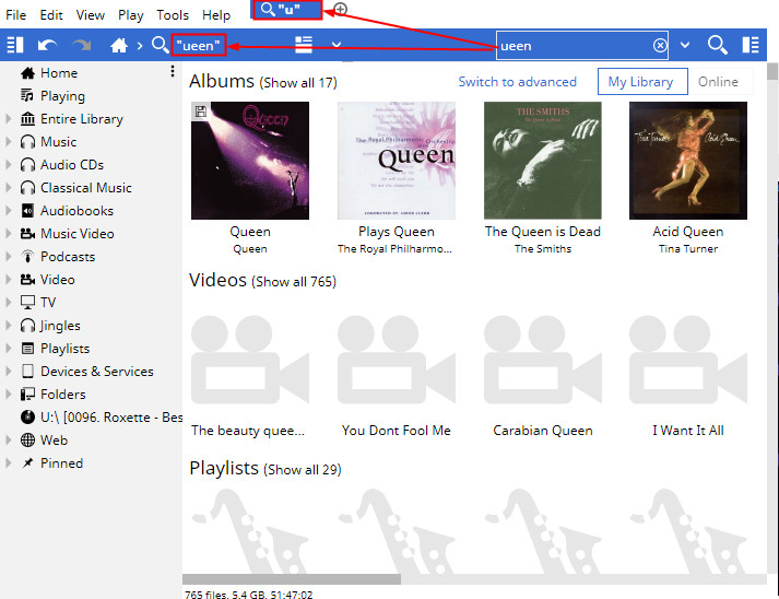 Tested 2243 and this still isn't working properly if a slightly different usecase is tested: 1 Open Tab 1 and Tab 2 2 In Tab 1 Initiate Global Search for U2 --> Correct search results appear (204 tracks) 3 Click 'Switch to advanced' 4 Add criteria: Genre contains rock and press ENTER (note: Match is set to 'Any') --> search results expand as expected (4671 tracks) 5 Click Tab 2 6 Click Tab 1 --> Search results for 'U2' appear (rather than being based on the advanced filter) i.e. 204 tracks instead of 4671 tracks! |