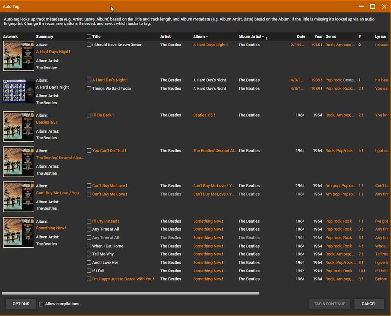 | Summary | 0016647: Auto-tag: duplicate tracks confuses the auto-tagging algorithm for full albums | ||||