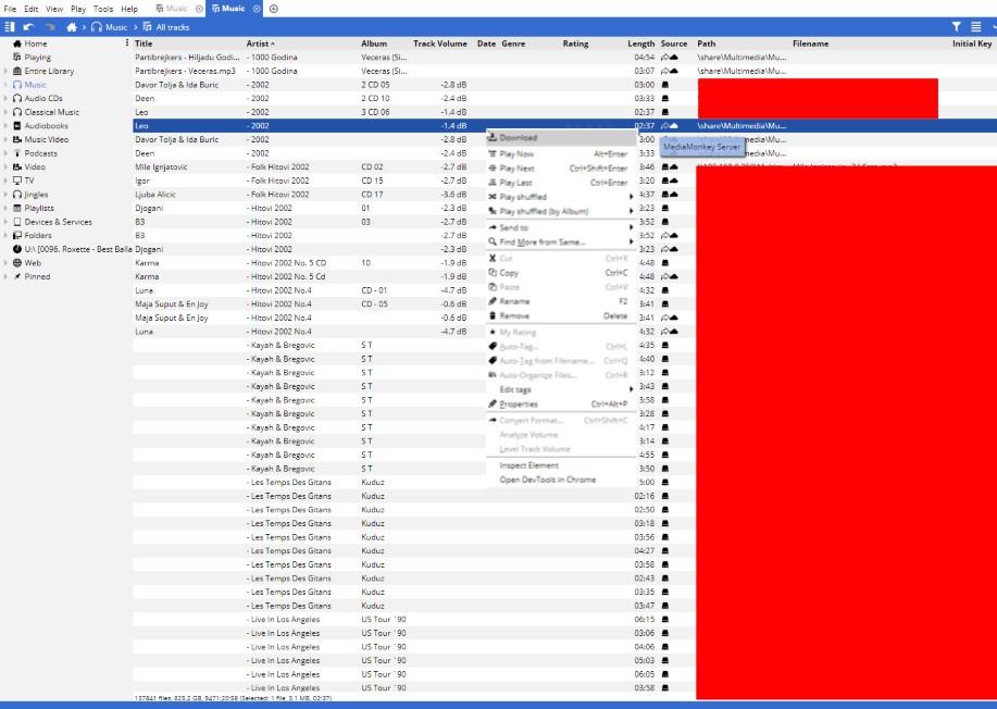 | Description | Many Context options do no work on tracks that are only on MMS eg. - Auto-Tag from Filename is not available (Grayed - FMFS -> Folder Library do not work from tracks on MMS which should be working even MMS is not available | ||||