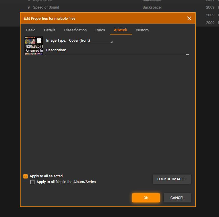 Fixed in build 2261. Artwork list in properties dialog preserves original size now, as it is not grid. Size of images in image lookup dialog now corresponds to changes in Image size setting immediately without need for restart. |