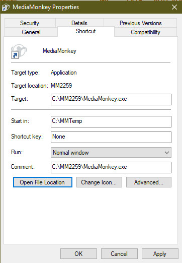 | Description | In 0016098 we have made some changes and Using /INIFILE is a bit cumbersome for some users. There is an easier way to tell MM Where to start by changing "Start in:" Within Shortcut file. The problem is that changed working folder is not used, but rather folder where MediaMonkey.exe is. Using Steps below User can create multiple Shortcuts pointing to different Portable folders that each would have own options. | ||||