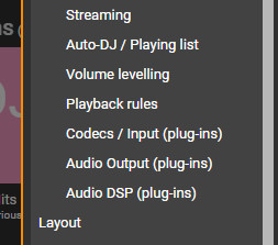 afaik, the above would require new strings. So if we want to make the change for 5.0, I'd go with: Codecs (Input plug-ins) Audio (Output plug-ins) DSP plug-ins I also prefer the version I've written in terms of clarity, but not a huge difference either way... (note: re. DSP plug-ins, we could also use 'Audio (DSP plug-ins)' but I wasn't sure if that's better since it may take the focus away from 'Audio (Output plug-ins)' for users who want to configure Audio settings). |