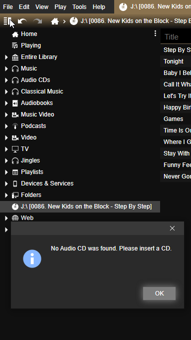 Summary0017970: CD Metadata Lookup: When trying to fetch metadata for CD (FreeDB) sometimes MM5 thews No Audio CD inserted