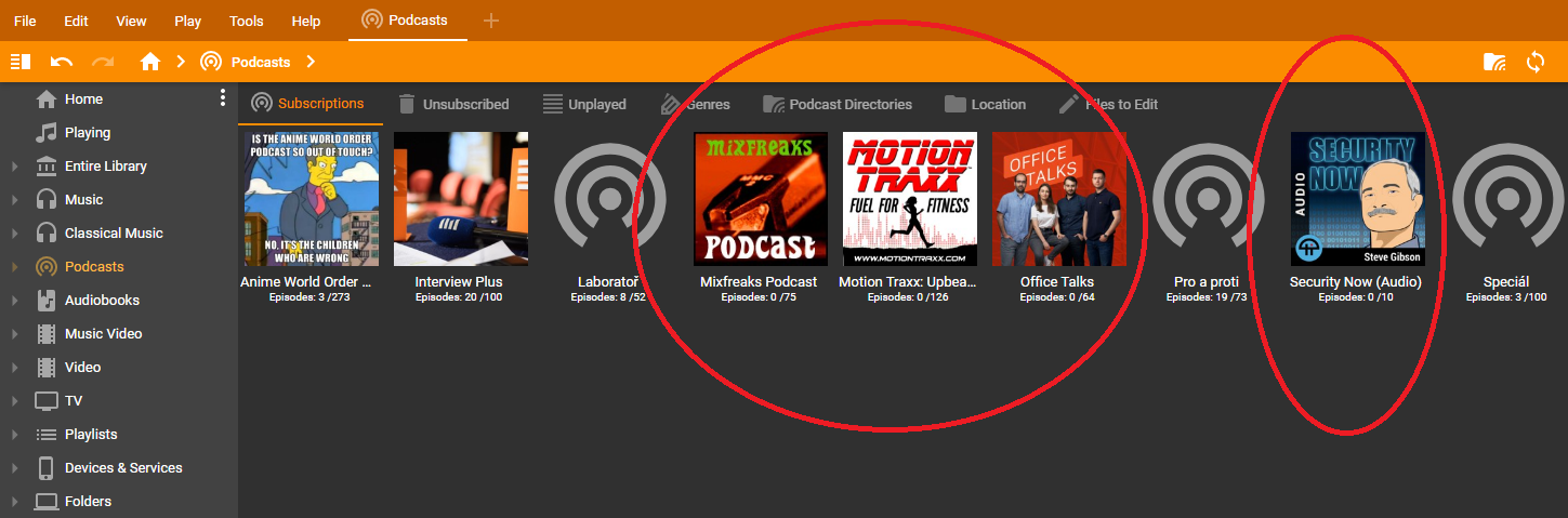 | Description | Podcast Art is not shown in Listing even RSS contain URL to podcast Art. Tested URLs are: http://feeds.feedburner.com/Mixfreaks?format=xml http://music.motiontraxx.com/episodes/motiontraxx.xml https://feeds.transistor.fm/netokracija-office-talks https://feeds.twit.tv/sn.xml | ||||