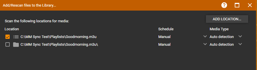 | Description | When scanning the folder containing the Playlist it works, but when selecting the individual Playlists themselves for scan it fails to scan the Playlist files into MediaMonkey. | ||||