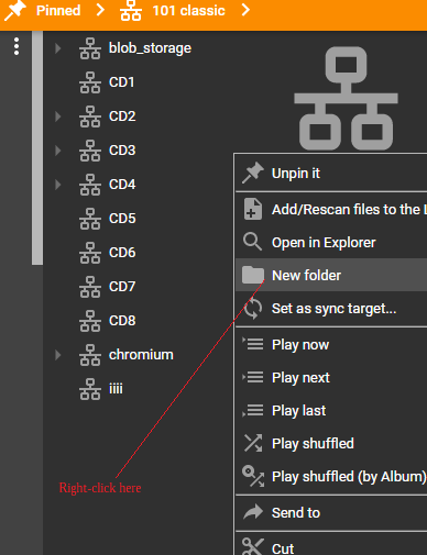 Have you tried to create a new folder using the New Folder menu item there? I think that will create the folder in 101Classic>CD2, not a top level folder in 101Classic ie. if my hierarchy is MusicShare>Artist>Albums, I cannot create a folder for a new Artist, but I can add albums to an existing artist. |