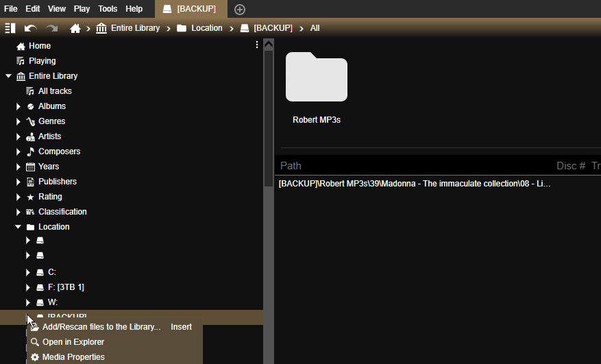 | Description | Currently there is only one way to Locate moved/missing tracks and we should try to Improve batch locating moved missing tracks. I would propose these solutions: i) On Medias which do not have Drive letters and are type FIXED and/or all except for Audio CDs, inside of context menu instead of Add to library it should be Locate moved/missing ii) On tracks that do not have Drive letter context menu there should be an option to Locate Moved/missing tracks Introducing this would make things more easier for users to quickly initiate batch locate moved missing. | ||||