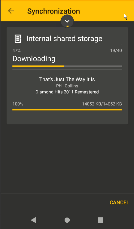 2) In relation to the dialog, each time a track completes downloading, the next track appears, but the status bar disappears and the dialog shrinks. Then the status bar appears and grows from 0 to 100% This looks kind of strange. The track status dialog shouldn't keep changing in size, and the status bar should appear immediately as soon as the next track appears.