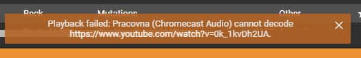 | Description | User from ticket # 5242 attached debug log when casting YouTube videos fails to play (to Chromecast). In the log I see error: ,[2,["loungeScreenDisconnected",{"reason":"unmatchingTheme"}]] EDIT: I am testing this on various Chromecast devices and I gets exactly the same type of error with 'Chromecast Audio' device (which doesn't support video playback). So the issue is that instead of showing "The player is turned off or inaccessible" it should show the "unsupported format" message and skip to the next track | ||||