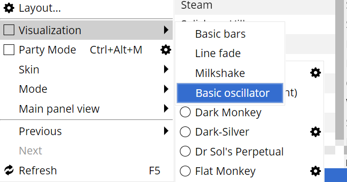 | Description | Sometimes a sub-menu stays visible while hovering another menu or sub-menu, which causes overlapped menus. The screenshot shows the Visualization menu overlapping the Skin menu, both displayed at the same time. | ||||