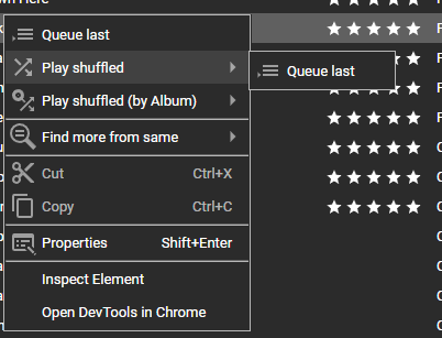 Verified on 3015, however it seems there is no point to leave Play Shuffled > Queue last and Play shuffled (by Album) > Queue last in the Context and Play Menu. |