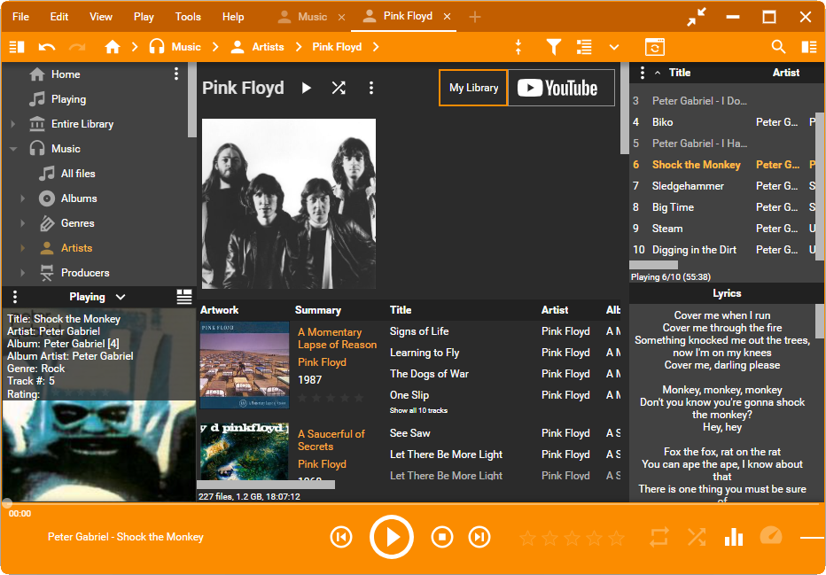 6. I am talking about Play normally, Play Shuffled, three dots menu button and My Library button in the main view next to the artist name when the Info panel element is enabled (it could be seen on the screenshot). It is too much to cycle through all these buttons with Tab key, they should be reachable using left/right keys after Play normally gets focus. 7. I wouldn't eliminate focus on the player entirely, but only for these commands that have alternatives in the main menu (Play, Next, Shuffle, ...), However, I would leave tab stops for seekbar, rating and volume bar since these don't have alternatives in the main menu. |