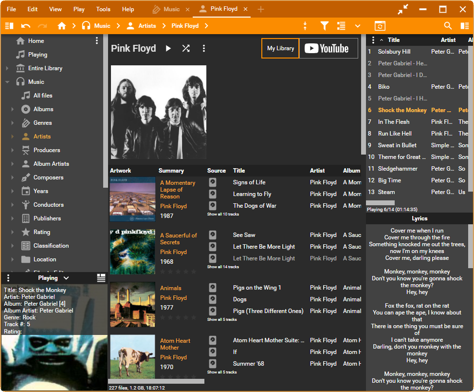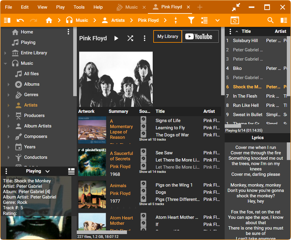 | Description | Take a List (by Album) as an example, as on the screenshots. Here is what should be resized: 1. width of the right side bar; 2. height of the Preview panel in left side bar; 3. height of Info panel; 4. width of all columns in the main filelist and Playing list including Artwork. All these things are set by program and cannot be done in skin. The 4-th one is most problematic because there are too many columns that should be resized manually after each changing of size. The issue is more noticeable when sizes are much different, for example when going from 12px to 24px or even 36px. You cannot see it with your skins when you change @baseFontSize from 13px to 15px, so I got the later screenshots with the modified info.json of Material Design, adding just this: , "24": "24px", "36": "36px" | ||||