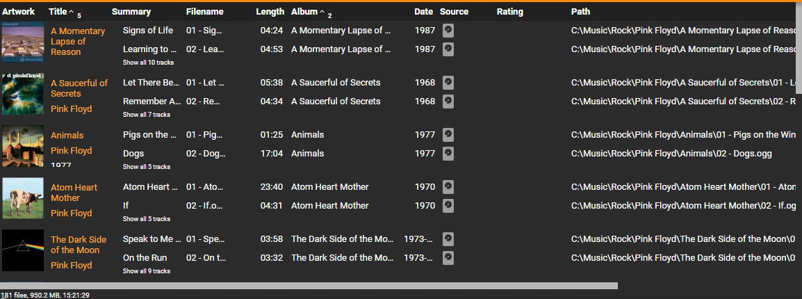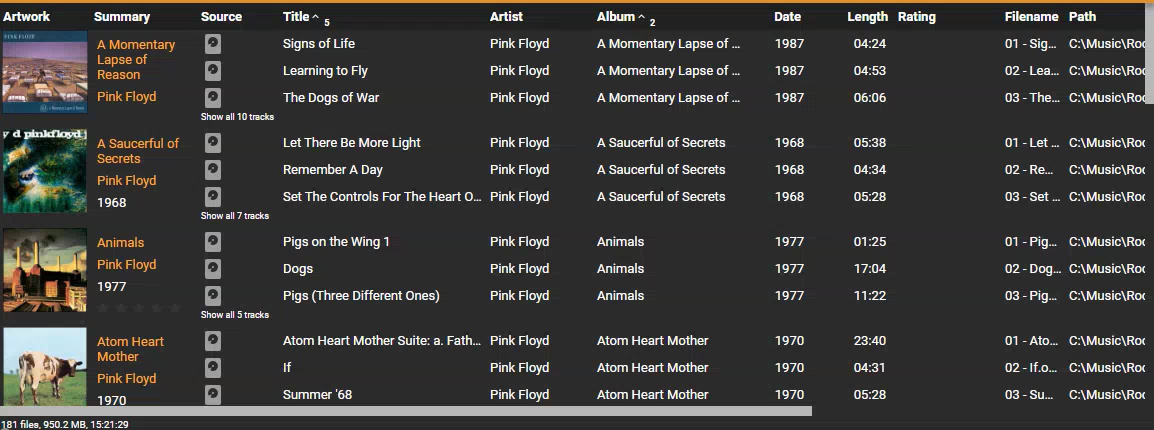 Yeah, I should have mentioned that I was hiding the Summary column using Hide column "summary"' from the context menu. By the way, Artwork and Summary could be also found under Groups menu. However, I am not sure disabling these options is the best approach. What if the program hides these columns all by itself (as it is already doing)? Then you cannot show them again if you remove that option. And besides, maybe some users would like to hide one or another column. |