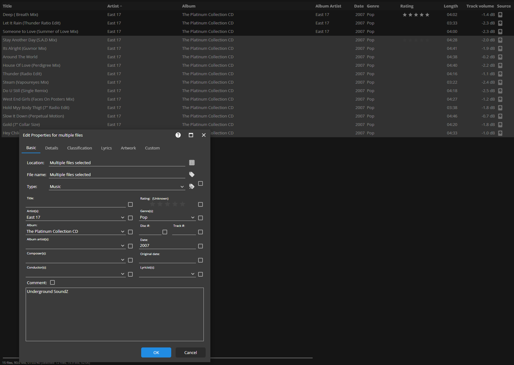| Summary | 0020986: Selecting all tracks from same album do not suggest filling missing album artist information in multi edit properties | ||||