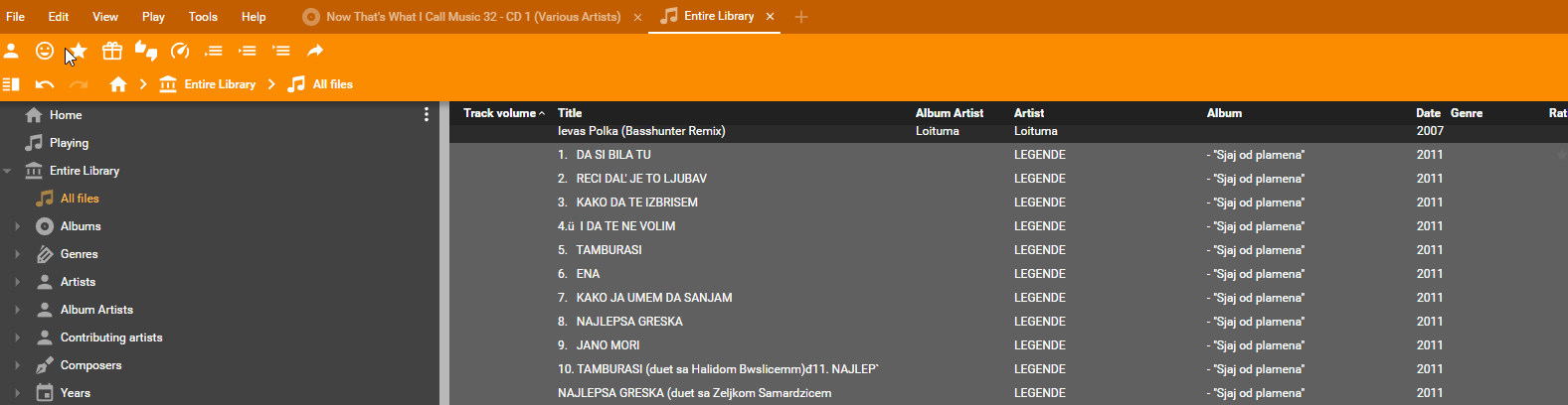 | Steps To Reproduce | 0. Set MM to List View and make sure that Artist, Album, Album Artists columns are visible 1. Open One Album in MM -> Entire Library -> Folders -> [FULL ONE ALBUM] 2. Select Few Tracks from Album -> Properties -> Delete Album Artist -> OK Which will separate Album to Two albums NOTE: @Ludek noted it in 0020978:0075710 and he is right that FMFS correctly works. 3. If you select tracks that have/have not Album Artist -> Properties it will Show things correctly according to 0016388 eg. not selected 4. After fixing 0016388 If you select all tracks from album both with and without Album artists it will show Properties for multi edit like all tracks have same filled Album Artist and there is no way to tell that user needs to check Album Artist in order to update/correct missing information Expected If Artist+Album(Album value is not Empty) is same for all selected tracks and some selected tracks have same Album artist value (or one have value and others have Album artist empty) then Album Artist Check Box should be Selected as clicking on OK will not trigger non needed tagging or wrong tagging like pointed in 0016388, but would actually fix/fill correct information for Album artist for the whole album. | ||||