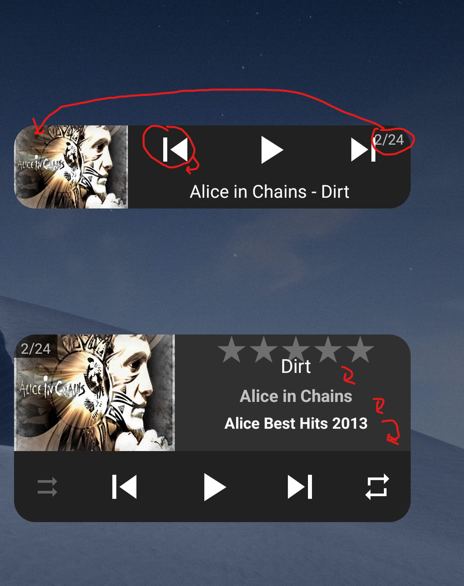 2) The track title can be overlapped in 4x2 widget by rating bar