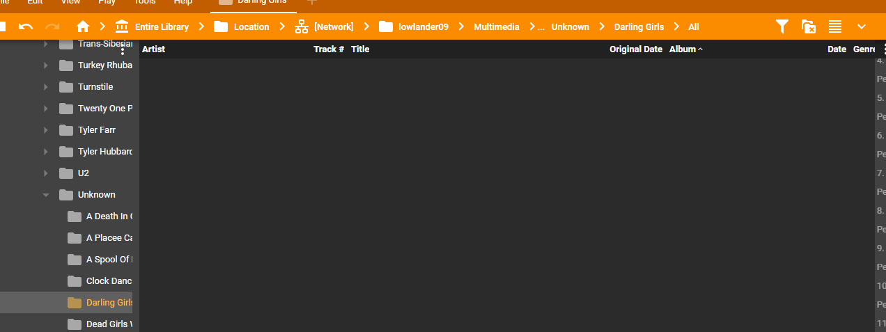 1. Uploaded to FTP 2. It happens on many, but not all. 3. Yes, Darling Girls is also seen under Entire Library > Location and after many restarts 4. 0020230 Deleting these folders fails 5. Doing Organize-Files from the Entire Library > Location node also failed to remove the now empty folder, so it isn't specific to Pinned (but the parent folder is Pinned). |