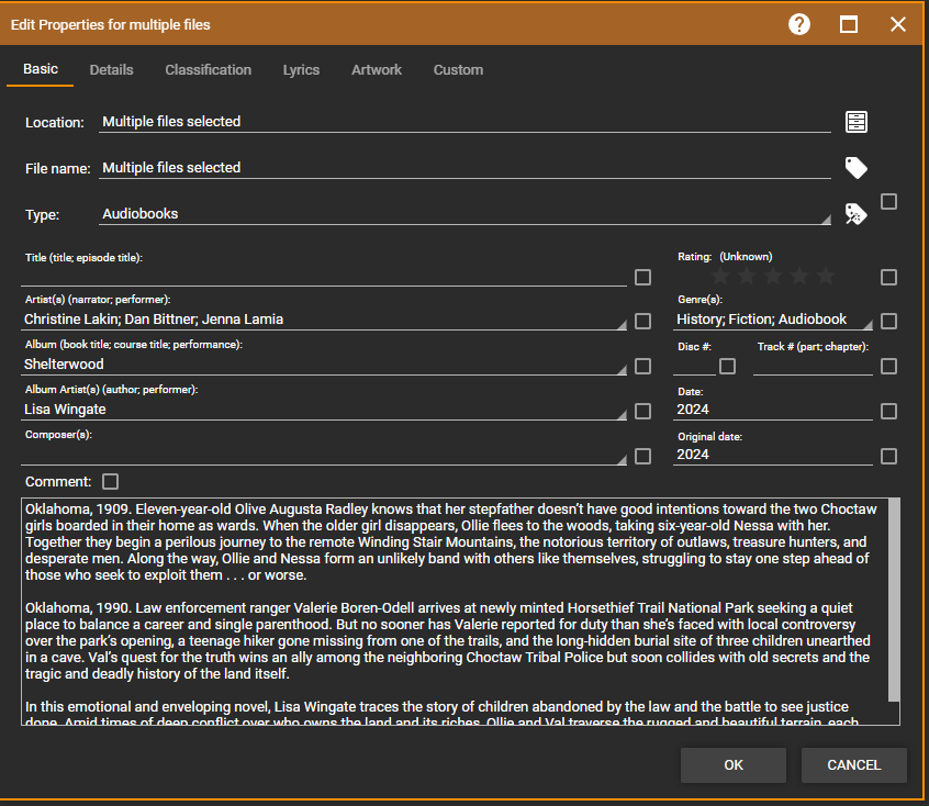 | Description | The Properties dialog currently has Composer on the Basic tab. This is not commonly used with Audiobooks. Publisher would be more useful here instead. | ||||