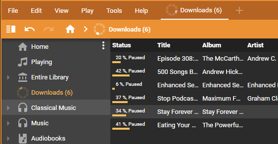Selecting all downloads, downloading and queued, and right click pause, does not pause all selected downloads on 3164. Queued files start downloading when doing this. 3) Unpausing the whole selection, fails to adhere to the concurrent download limit. It's set to 4 and all 11 selected paused files started to download. |