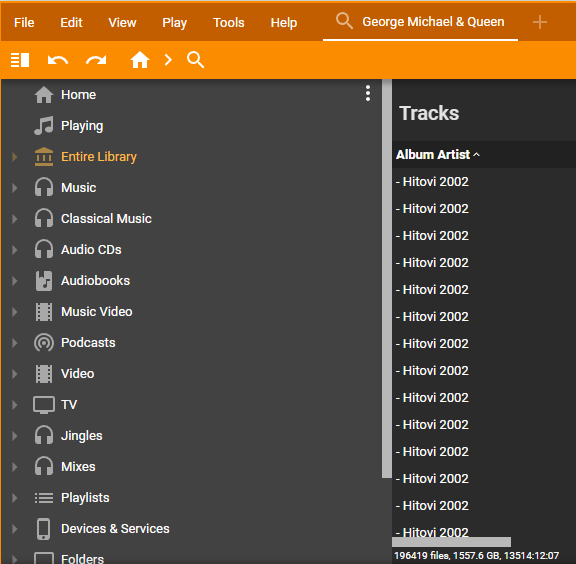 | Steps To Reproduce | 1. Start Advanced Search 2. Add any Criteria (I used Album Artist = George Michael & Queen) 3. Right click -> Find more from Same -> Album Artist: George Michael & Queen 4. Once it shows correct list use Toolbar Back Button to get back to Advanced Search 5. Address bar shows SEARCH result, but no criteria and list whole Library/Collection | ||||