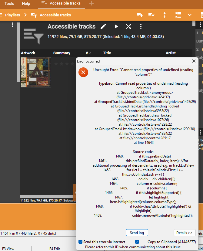 | Description | 1) Go to auto-playlist 2) Switch to 'List (by Album)' view 3) Switch to Party mode => crash | ||||