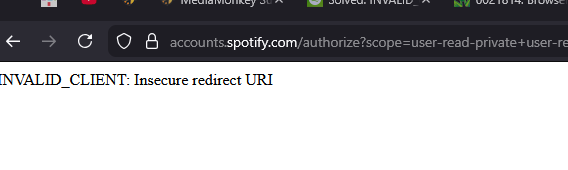 | Steps To Reproduce | 1 Add Service > Spotify 2 Login --> Receive error: INVALID_CLIENT: Insecure redirect URI | ||||