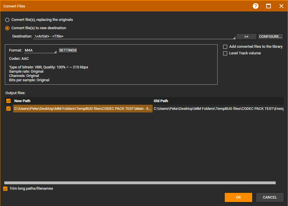 | Description | 2 serious issues: 1) setting VBR 100% should create ~210kbps file, but it creates ~135kbps 2) encoding to raw AAC stopped working | ||||