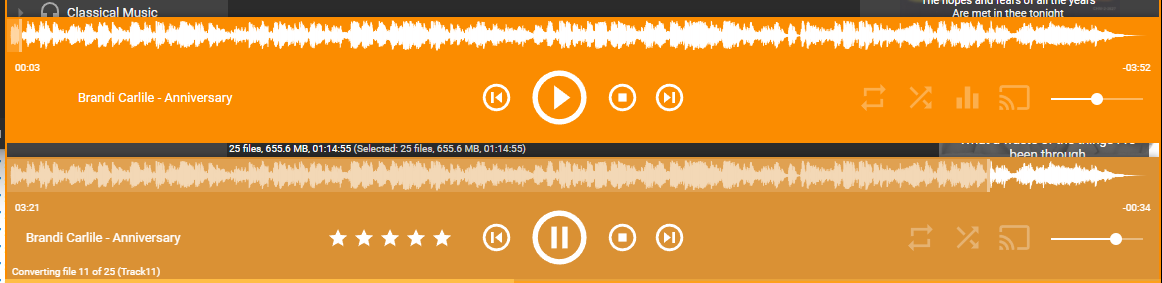 | Description | For many track waveform is drawn in such a way that it's most of the time at the highest possible value, which makes it less useful to seek such tracks. | ||||