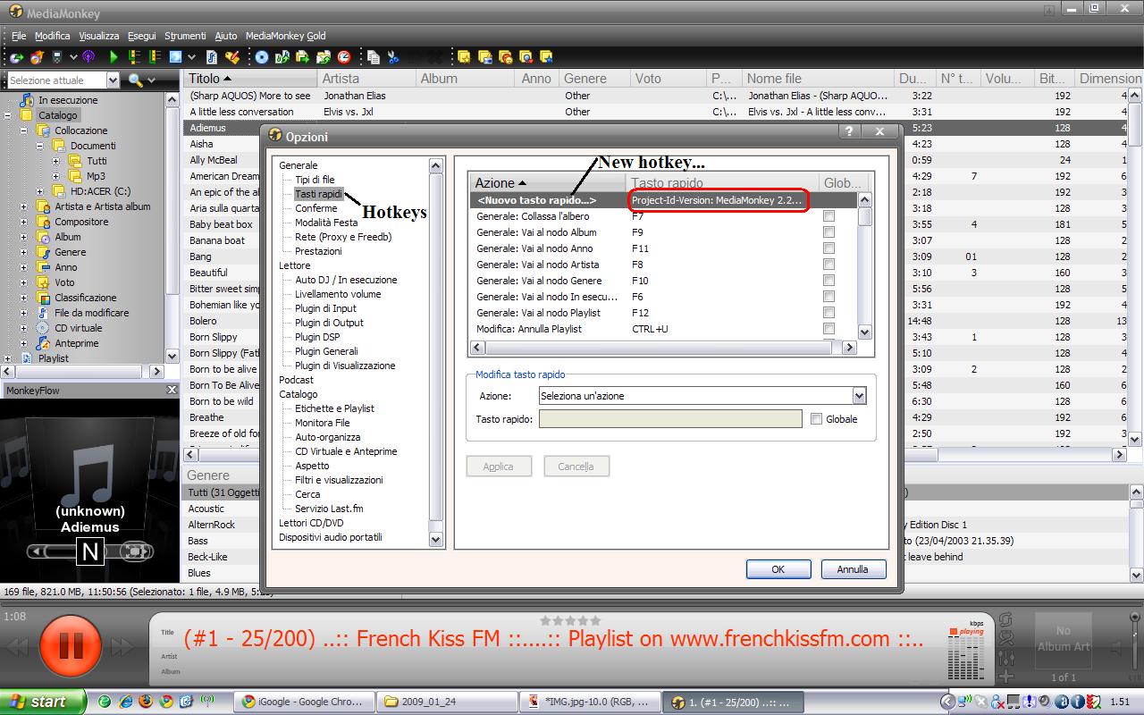 | Description | In localized versions of MM, a string appears in the second column of the hotkey panel next to the <New Hotkey> entry: "Project-ID-Version MediaMonkey 3.1.0.1218..." Screencap attached. Tested with both Italian and French. | ||||