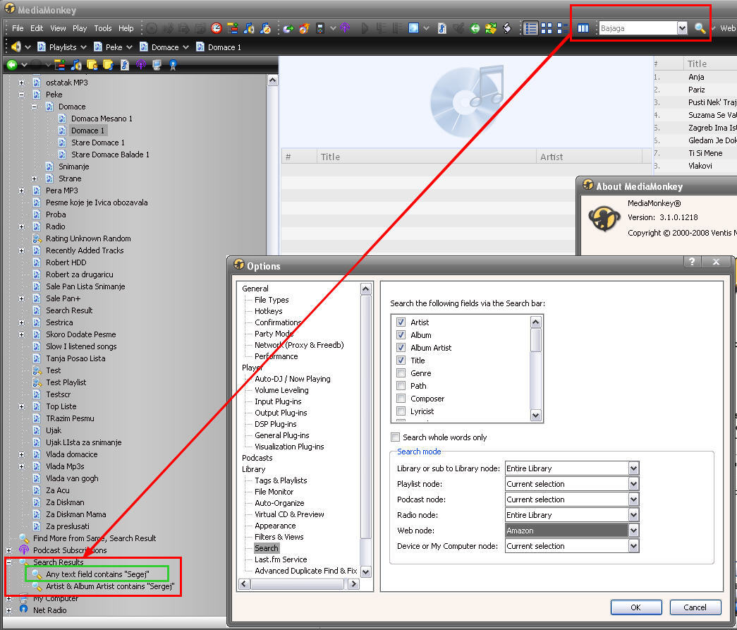 Green highlighted Search is previous quick search resulted with no tracks in library after that no quick searches can be initiated.
