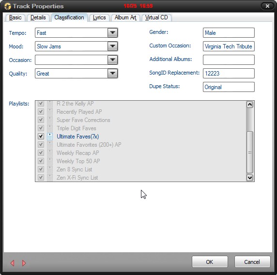 | Description | Static playlists are not displayed correctly in the properties panel. Instead of being listed in the various playlists, they are listed under one with a number for each playlist. For example if the track is in 7 playlists, it is listed as Ultimate Faves (7x). This issue is reported here: http://www.mediamonkey.com/forum/viewtopic.php?f=6&t=43802 |