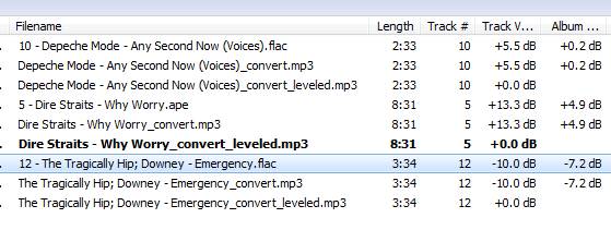 It seems that the bug is more general than originally described--it's not specific to auto-conversion but to conversion in general. Here's how to easily reproduce: 1. Take 1 ape/flac track with +10db track vol. coefficient and one with -10db track vol. coefficient 2. Make sure that MM is configured with Tools > Options > Player > Level Playback/Sync volume to use Track volume coefficient (note that there may be another issue here: does the conversion dialog use this setting? it should, but I'm not sure that it does.) 3. Convert the tracks to MP3 (Medium: VBR preset) labeled as <filename>_convert.mp3 4. Convert the tracks to MP3 (Medium: VBR preset) with volume leveling enabled, labeled as <filename>_convert_level.mp3 5. Play back the tracks with volume leveling enabled --> Converted tracks play back at the same volume as the original flac tracks --> Converted_leveled tracks play back at higher lower volumes!! |