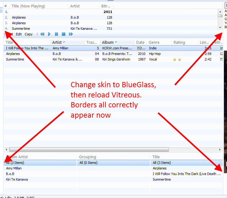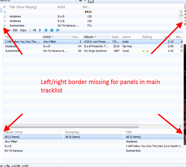 | Description | Left/right borders are missing for panels in main tracklist until loading another skin and then reloading the first one. (See attached images) | ||||
