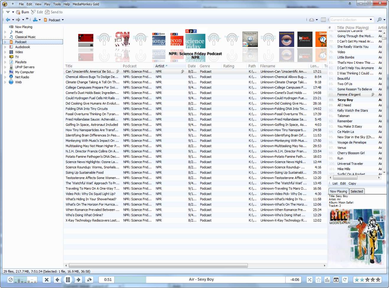 Petr, there are a couple of additional issues with non-default views: -Music Collection (AA+Details): Artist/Album column isn't enabled for this view. -Classical Collection (AA+Details): Artwork column is in the middle of the screen (after Composer). It should be the first column. Also, the Artist/Album column isn't enabled for this view. -Podcast Collection (Details): Track Browser not enabled -Podcast Collection (AA): Author Column should be Composer?? -Podacast Collection (AA+Details): Artwork column appears in the middle of the screen (after Artist), instead of in the first column. Stacking is by Podcast, however, the Podcast column needlessly indicates the podcast for each episode. -Audiobooks (Details): Track browser should be enabled -Video (AA+Details): Artwork appears after Series instead of at first column -For ALL Collections (AA and AA+Details): for any groups, 'Unknown' appears as the first group instead of as the last group. |