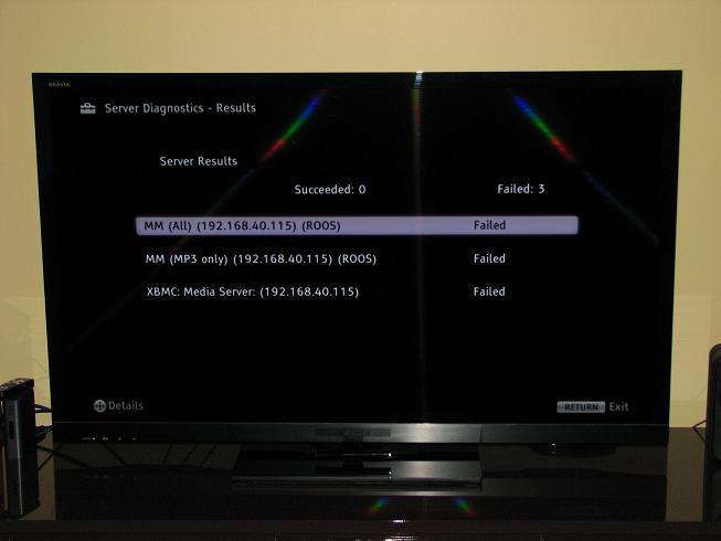 | Description | Sony TV, KDL-55HX800 does not "see" MM4. It also does not "see" XBMC. The Sony TV has a NETWORK DIAGNOSTIC menu option, and when run that, the TV then lists MM4 and XBMC, but with a status of "failed" Users reported that also Sony BDP-BX37, Sony BDP-S370, Sony KDL-**EX700 do not find the MM4 UPnP server | ||||