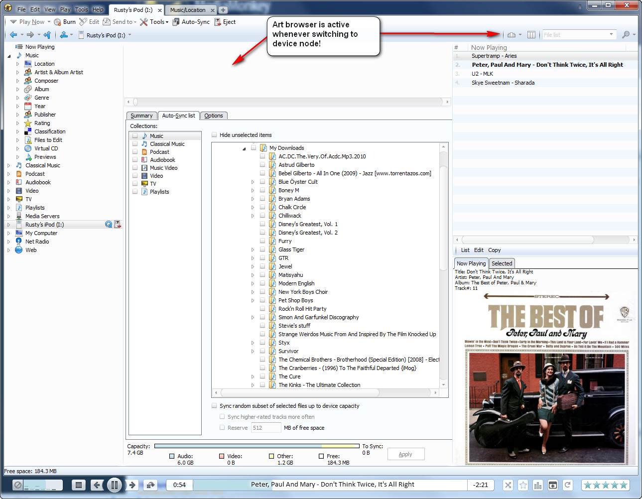 | Description | In build 1452 (clean portable install), the Art Browser view is active for the device view, and it's impossible to get rid of it. In addition, it is set as the default view for several other nodes (e.g. Playlists, Media Servers, My Computer, Net Radio and possibly others). | ||||