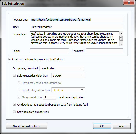 | Description | Steps to reproduce - Subscribe to http://feeds.feedburner.com/Mixfreaks?format=xml using settings from Attached Picture - Start playback of any non downloaded podcast Now you can replicate below bugs: 1. Find More from Same Incorrect behavior a) Info is not correctly Picked up even it is available (Artist, Album) b) Folder (Library) should point to podcast c) Folder (My computer) should point to podcast destination folder if exists 2. In Case that user plays Subscribed Podcast that is not yet downloaded. Right clicking on playing track should allow user to initiate particular podcast download. Instead User needs to navigate his podcast to locate playing Podcast and initiate download. 3. In case Podcast is downloaded while play streaming same podcast restarting playback sometimes just skips track instead of using downloaded podcast version and podcast needs to be re-added from podcast subscription | ||||
